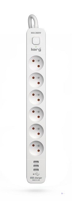 Listwa zasilająca KERG z wyłącznikiem-6 gniazd 3USBA 16A 1,5m