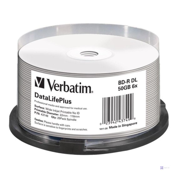 Płyty BD-R DL Verbatim 50GB 6x Wide Printable - No ID Brand (spindle 25)